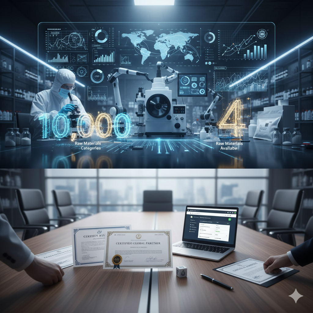 We offer an impressive range of over 10,000 available raw materials. Our entire assortment is cataloged across 4 key categories, making it easy to find exactly what you need to ensure production continuity and foster innovation.